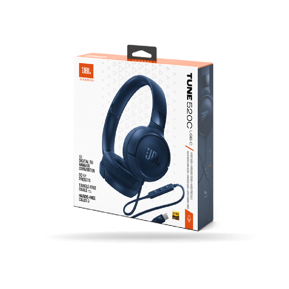 Auricular JBL Tune 520C USB-C, Con Micrófono, Hi-Res, Pure Bass, Azul | JBLT520CBLUAM