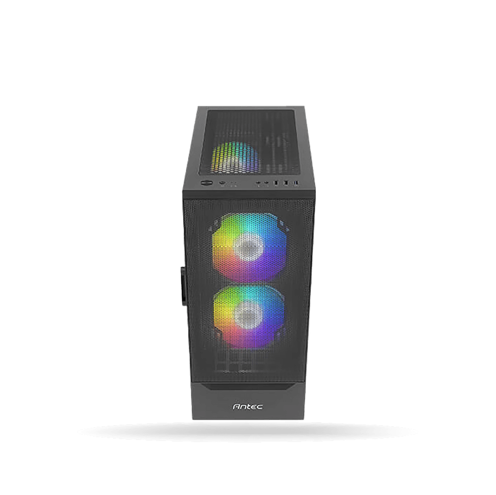 El Case Antec Gaming NX410 combina un diseño agresivo y funcional con un acabado en color negro y panel lateral de vidrio templado, ideal para mostrar el interior de tu PC. Su estética gamer resalta gracias a los tres ventiladores ARGB preinstalados, que ofrecen iluminación personalizable para darle un estilo único a tu setup.