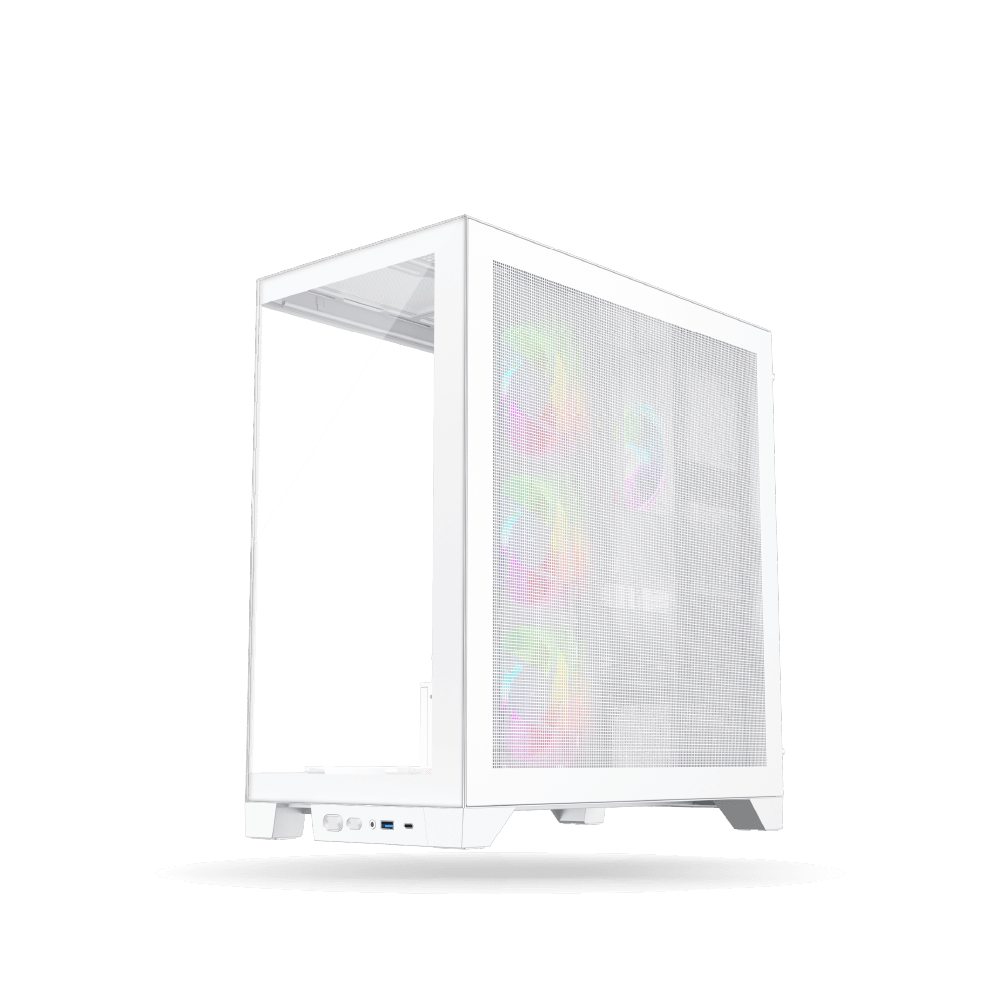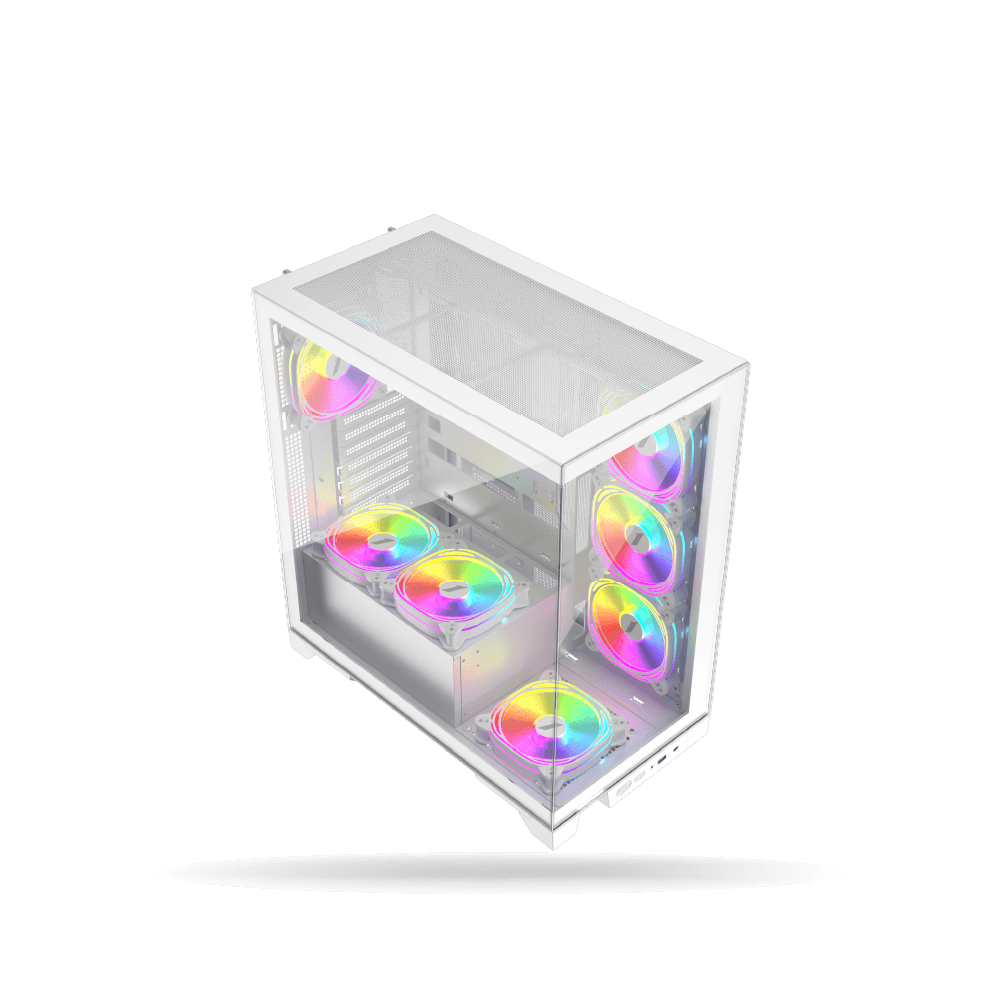 Su acabado blanco brillante resalta cualquier setup, aportando un estilo limpio y moderno. El panel lateral de vidrio templado permite admirar todos los componentes internos y disfrutar de la iluminación ARGB personalizable, ideal para crear ambientes visuales únicos.