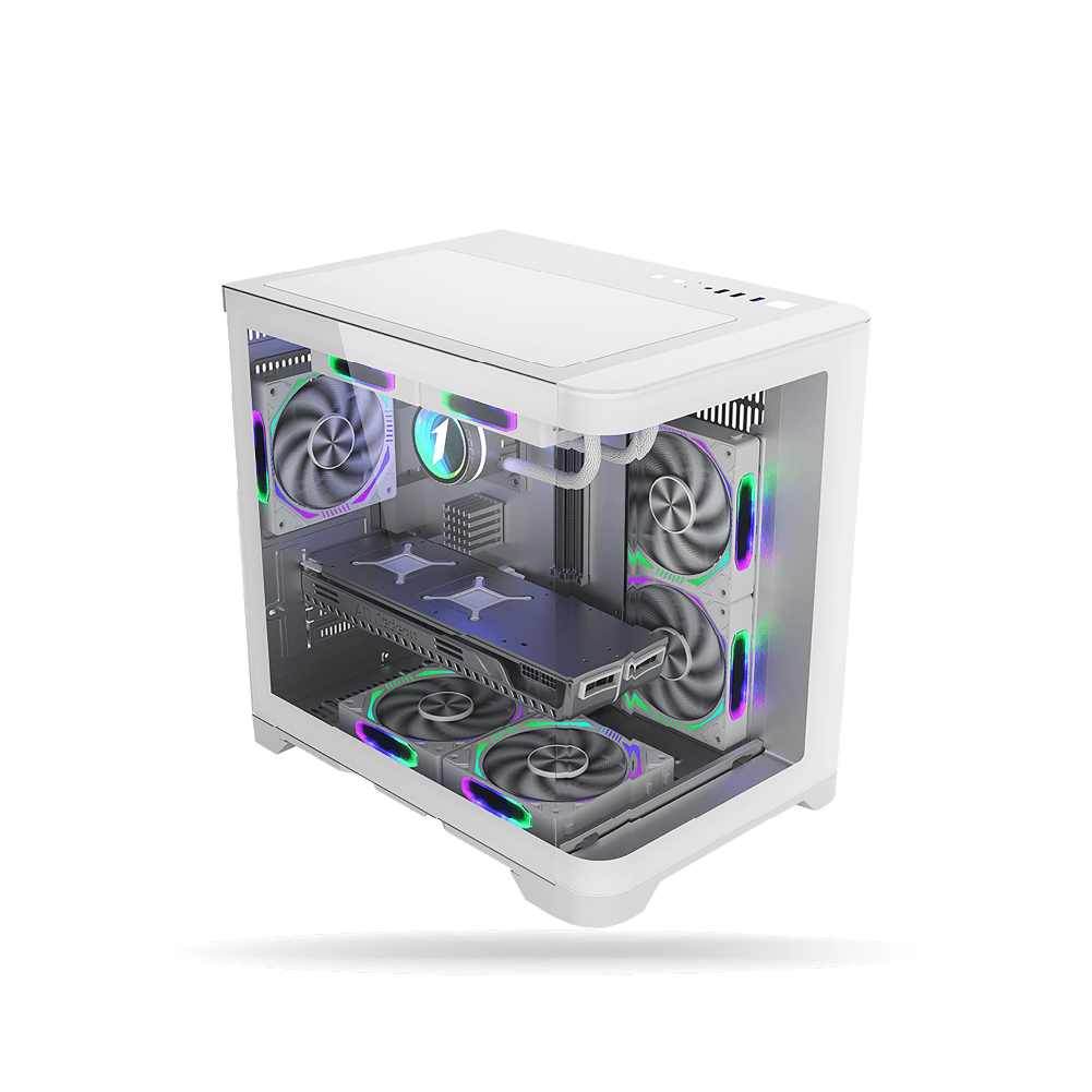 El Case Gaming 1ST PLAYER View UV5 Blanco está diseñado para gamers y entusiastas que buscan un equilibrio perfecto entre rendimiento, diseño elegante y refrigeración óptima. Su acabado en color blanco con panel lateral de vidrio templado permite exhibir tu hardware con estilo, mientras que sus 3 ventiladores ARGB preinstalados garantizan una iluminación espectacular y un flujo de aire eficiente. Este gabinete es la elección ideal para quienes desean construir un PC potente y visualmente impactante.