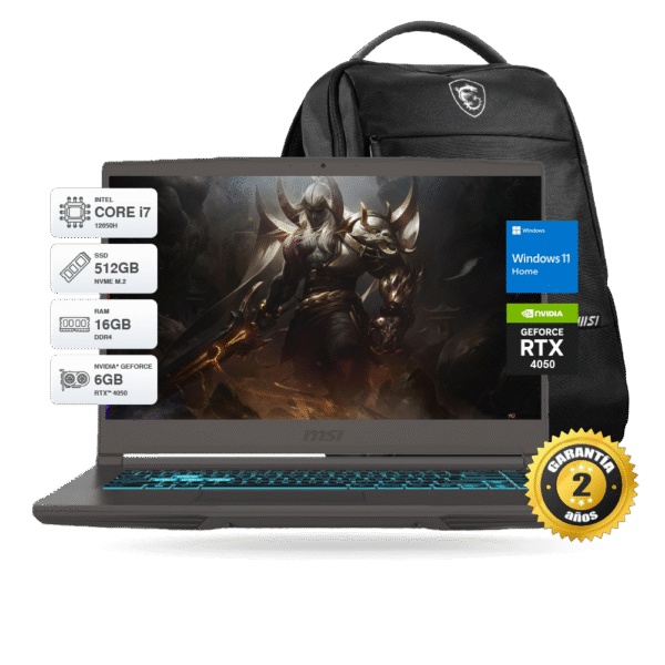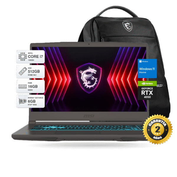 • Laptop MSI Thin 15 B13UC 15.6″ FHD 144Hz, Core i5 13420H, RAM 16GB DDR4, SSD M.2 512GB, RTX 3050 4GB GDDR6, FreeDOS + Mochila MSI.