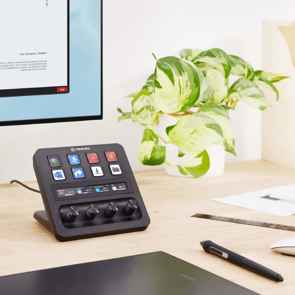 El Controlador de Estudio ELGATO STREAM DECK PLUS en color negro es la herramienta ideal para streamers, creadores de contenido y profesionales del audio y video que buscan un control preciso y eficiente de su flujo de trabajo. Su diseño elegante y sobrio en acabado Black se integra perfectamente en cualquier setup profesional o gaming.