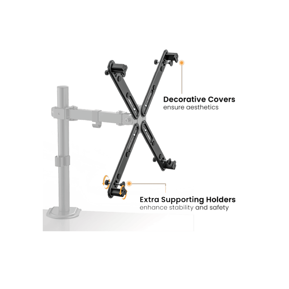 Su fabricación en acero inoxidable de alta resistencia asegura una vida útil prolongada y una estructura robusta que no se deforma con el tiempo. Este material no solo soporta el peso del monitor sin problemas, sino que además evita la oxidación y brinda una mayor seguridad en comparación con adaptadores plásticos o de baja calidad. Su acabado en color negro combina con entornos modernos, setups minimalistas y estaciones de trabajo profesionales, creando una integración visual limpia y elegante.