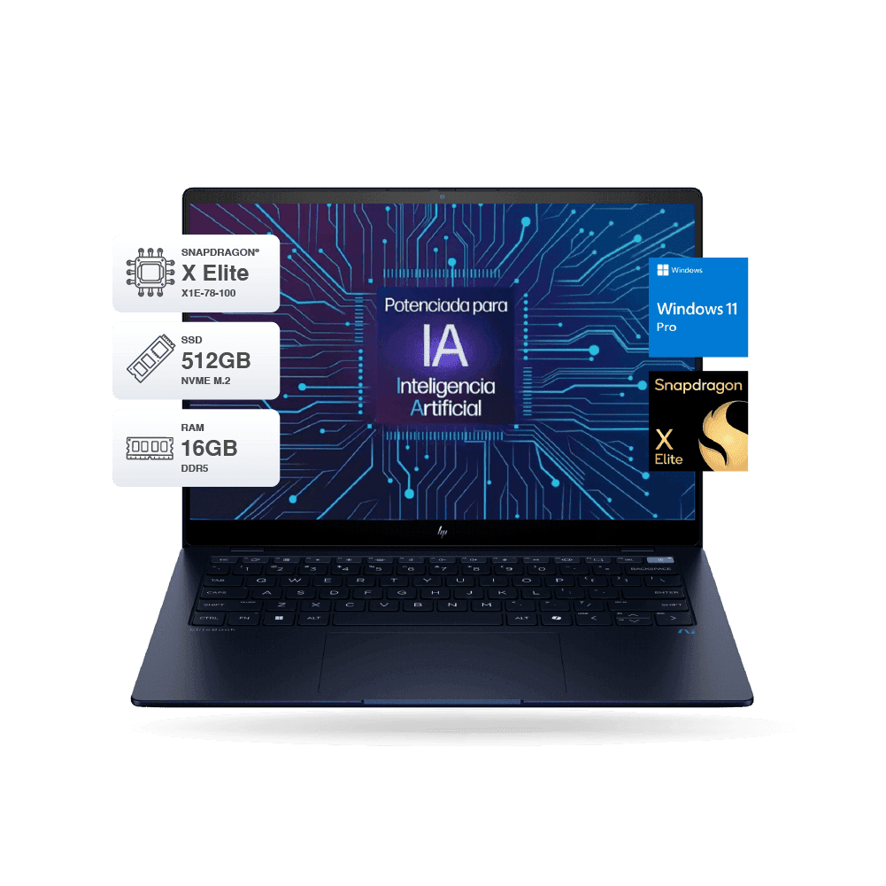 La HP EliteBook Ultra G1Q redefine la productividad profesional al incorporar un procesador Qualcomm Snapdragon de última generación con inteligencia artificial integrada. Esta tecnología permite una gestión más eficiente del consumo energético, procesamiento optimizado y respuestas más rápidas ante tareas cotidianas. Gracias a su arquitectura orientada al rendimiento y la movilidad, esta laptop es ideal para ejecutivos, creativos y profesionales que demandan agilidad y autonomía.