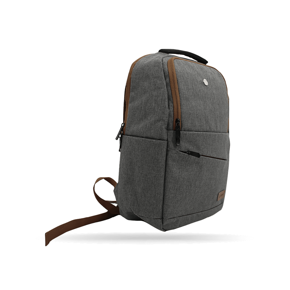 Con un acabado en poliéster de alta calidad, esta mochila destaca por su estética sobria y versátil. El contraste entre gris y marrón le otorga un toque distintivo que combina con cualquier estilo, ya sea para uso en la oficina, universidad o viajes de negocios. Su forma delgada y ligera permite transportarla cómodamente durante todo el día.