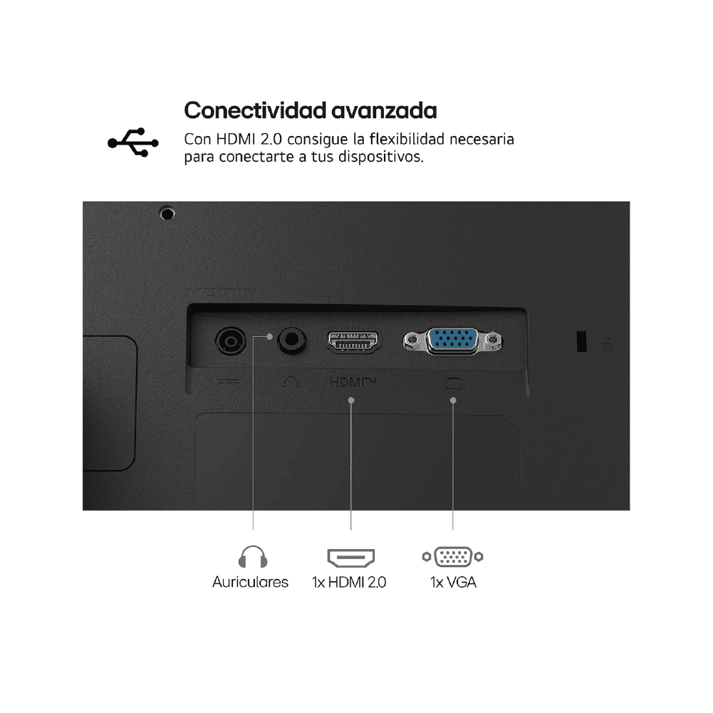 Incluye 1 puerto HDMI y 1 puerto VGA, lo que lo hace compatible con PCs modernas y equipos más antiguos. Su diseño sobrio y elegante se adapta fácilmente a oficinas, hogares y setups profesionales.