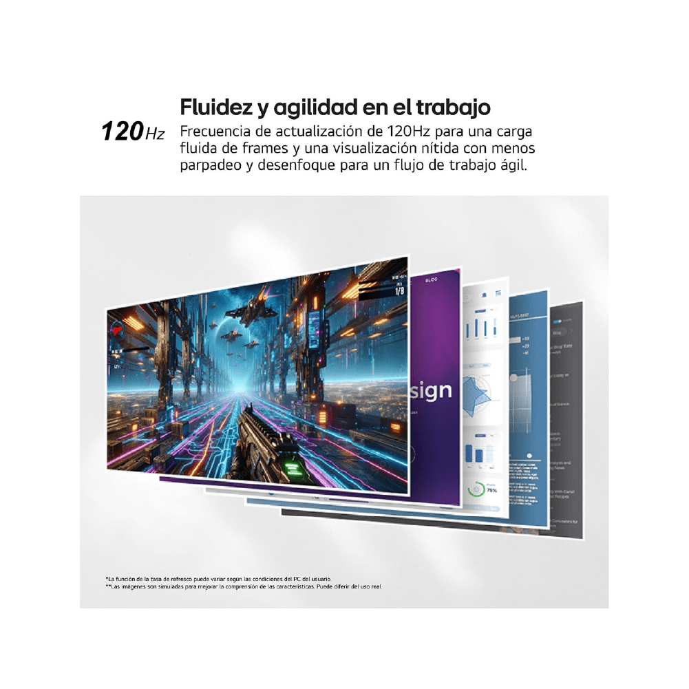 Con una tasa de refresco de 120Hz y un tiempo de respuesta de 5 ms GTG, este monitor brinda desplazamientos suaves y menor desenfoque, perfecto tanto para productividad como para gaming casual y videos de alta calidad.