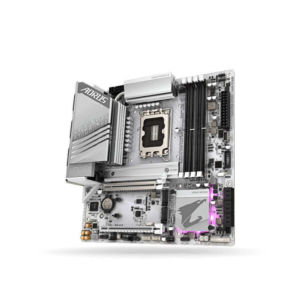 Su diseño mATX ICE combina estética premium con componentes de alta durabilidad, disipación térmica optimizada y la confiabilidad característica de Gigabyte AORUS, convirtiéndola en una excelente base para builds modernas y elegantes.