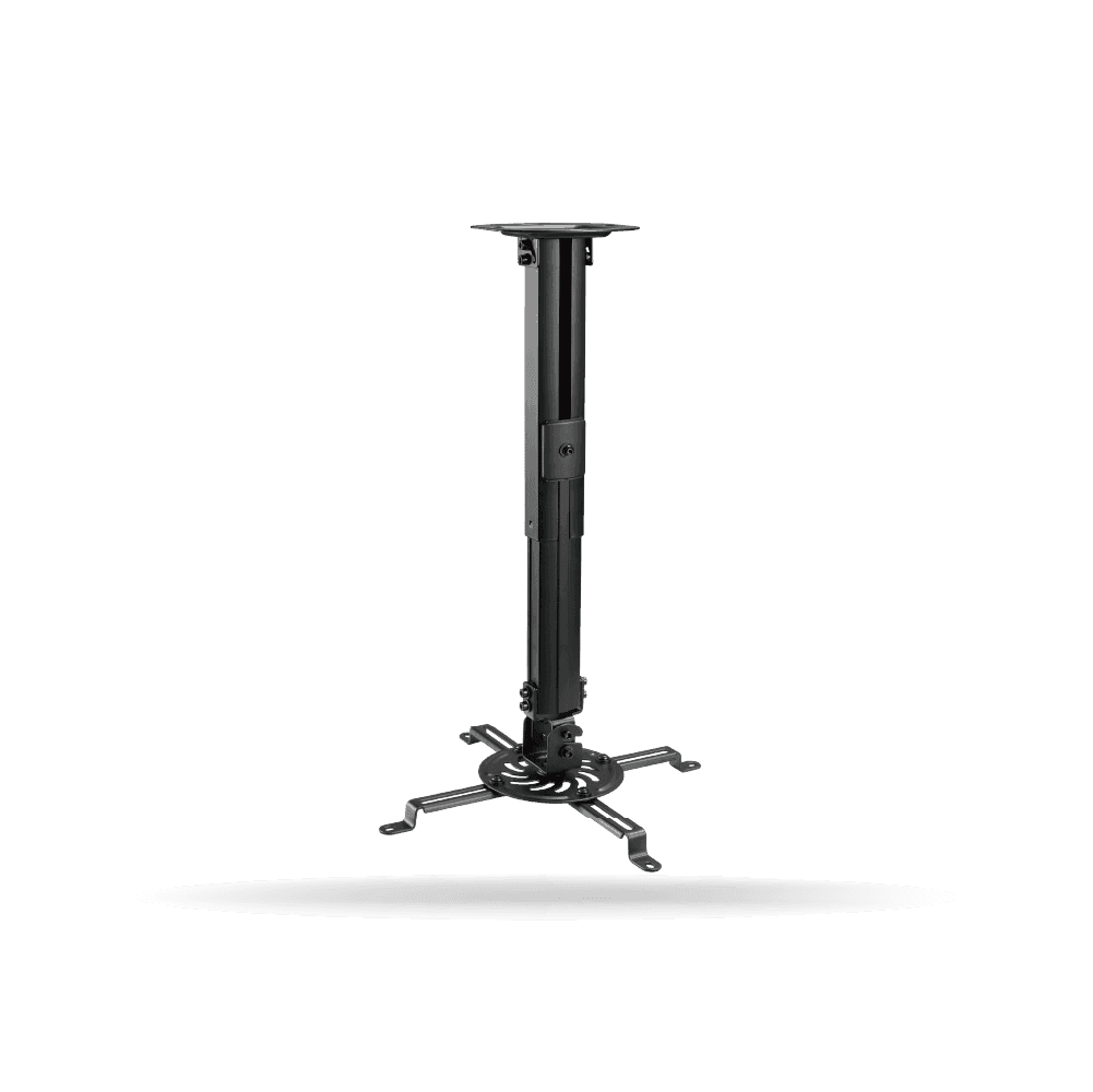 Gracias a su diseño ajustable, el RPK-B se adapta a múltiples configuraciones de espacio y altura. Esto permite posicionar el proyector de manera óptima para obtener el ángulo y la distancia de proyección ideales, maximizando la calidad de imagen y la comodidad visual. Su color blanco combina a la perfección con techos modernos y minimalistas, logrando una apariencia limpia y discreta que se integra al entorno sin romper la estética.