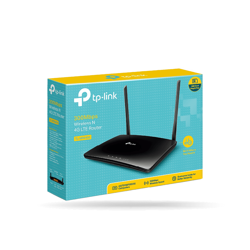 El router inalámbrico TP-Link 4G LTE TL-MR6400 ofrece conexión rápida y estable de hasta 300 Mbps, ideal para hogares, oficinas o ubicaciones sin Internet fijo. Con solo insertar una tarjeta SIM, tendrás Wi-Fi inmediato y seguro con cobertura amplia.