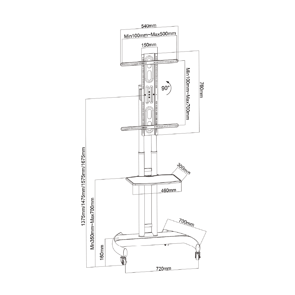Fabricado en acero inoxidable, el SP90-6040 destaca por su resistencia al uso continuo y por ofrecer un soporte confiable incluso para televisores grandes. Su acabado en color negro le otorga un estilo moderno y profesional que combina perfectamente con entornos corporativos y educativos. Este pedestal asegura un montaje firme, manteniendo la pantalla a la altura adecuada para presentaciones, videoconferencias o exhibiciones.