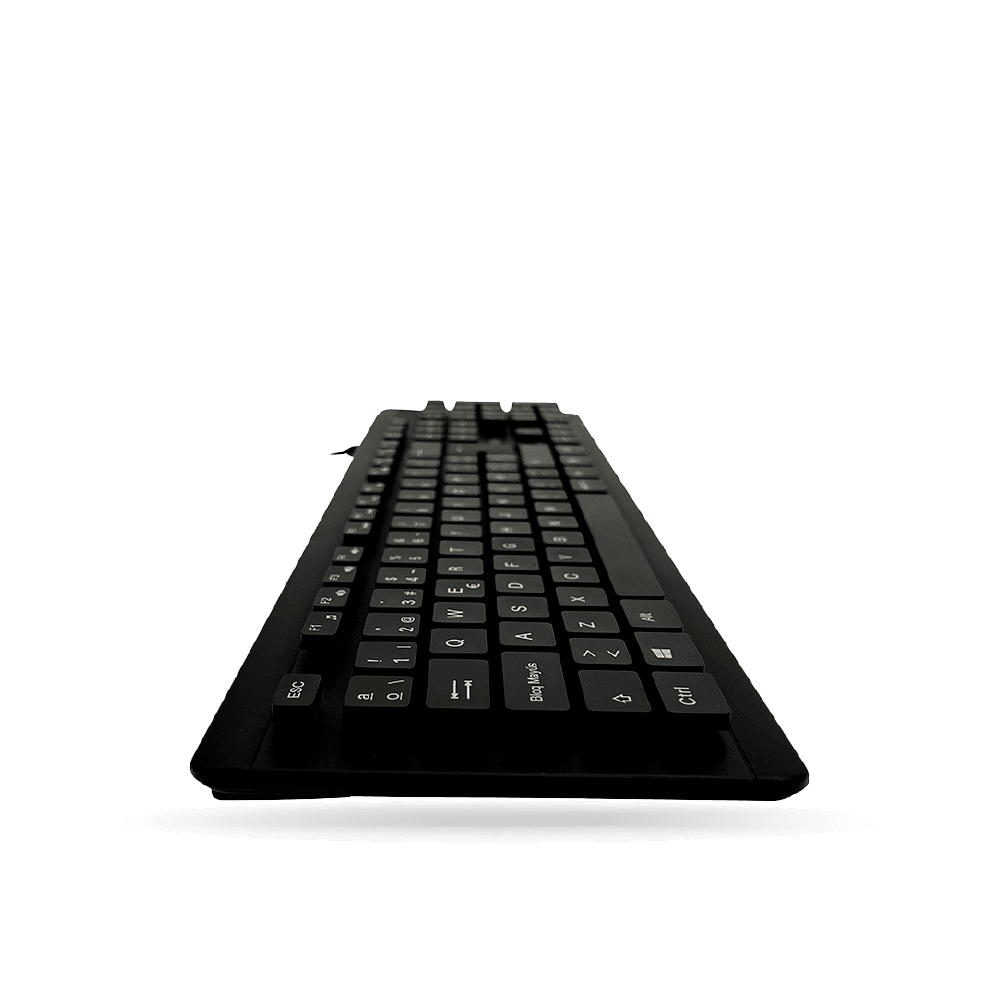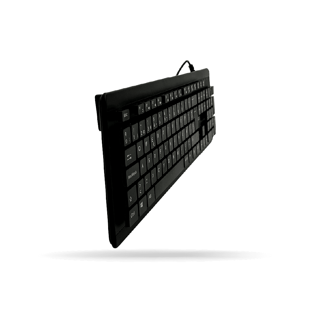 Con un acabado negro elegante y materiales resistentes, este teclado combina funcionalidad y estética para oficinas, entornos industriales o uso doméstico.